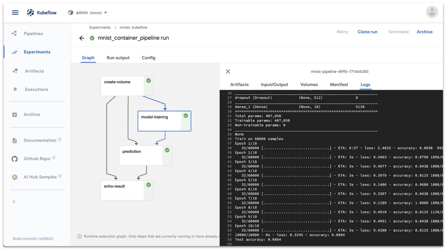 - 指定要生成的工程文件——如方便地存储在Kubeflow仪表板内的Artifact Store中的图形,表格,选择的图片,模型。