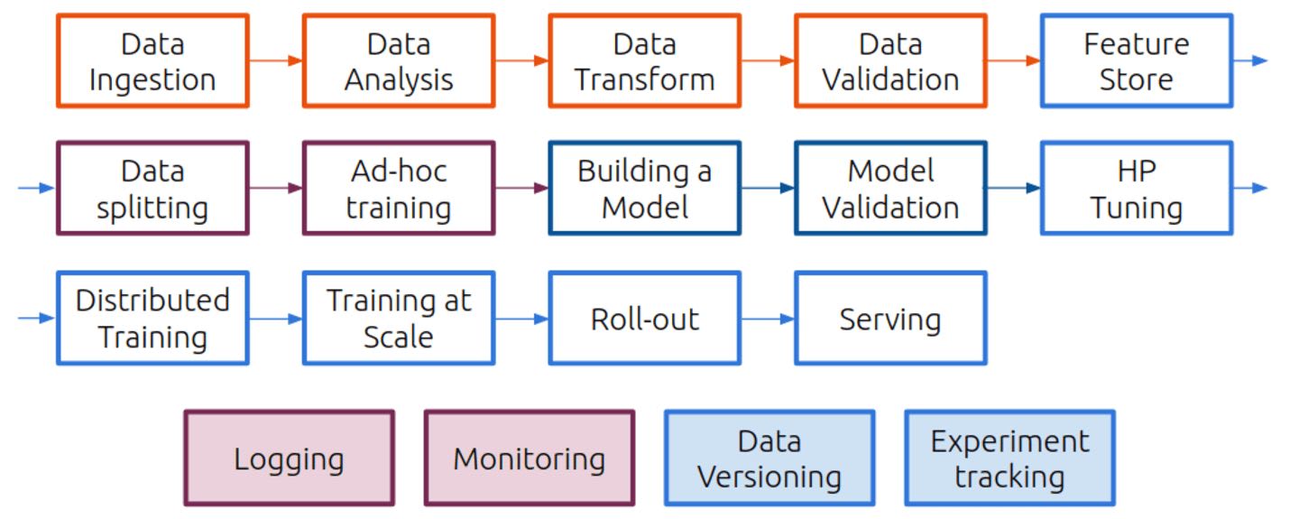 另外,这些步骤通常在不同的系统上运行。在实验的初始阶段,数据科学家将在工作站或本地训练平台上工作,大规模训练通常会在云环境(私有,混合或公有云)中进行,而推理和分布式训练则经常发生在边缘端。
