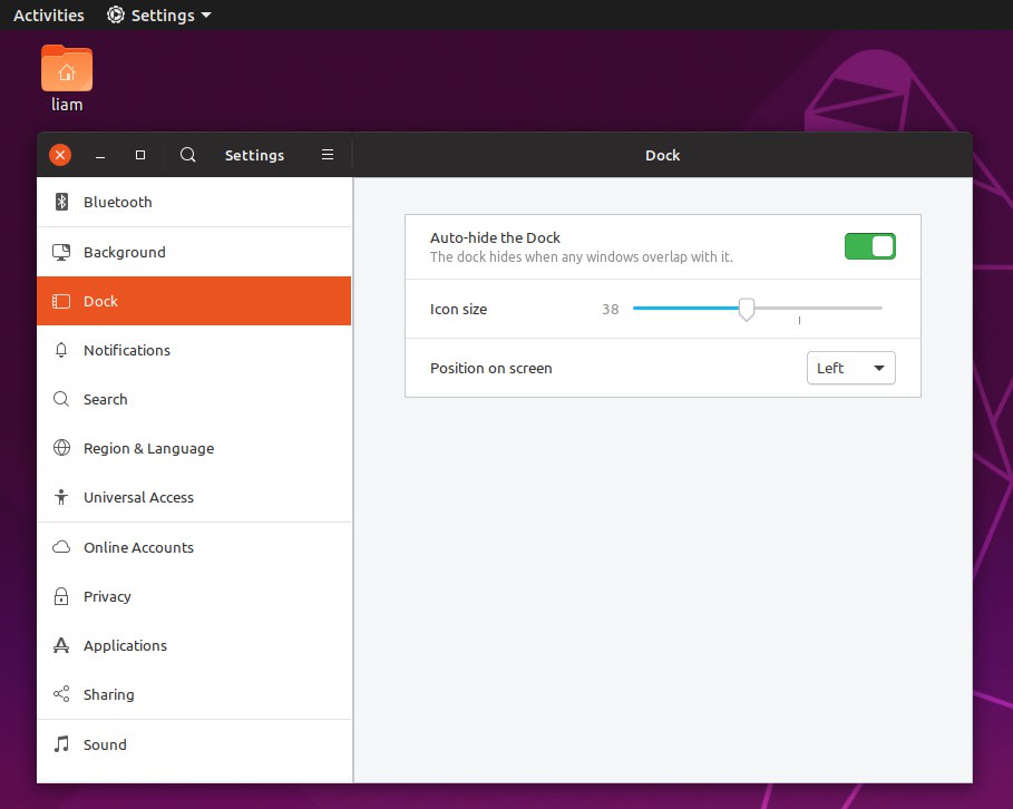 Ubuntu 至迁移到Gnome环境后,在用户体验上与Unity尽量保持一致。Dock有和Unity相似的应用侧栏。默认设置下,单击Dock图标是打开应用动作。不过可通过修改设置开启“单机最小化”的功能,多个应用程序间切换更容易。