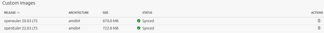 maas $PROFILE boot-resources create \ name='rhel/rhel8' title='openEuler 22.03' architecture='amd64/generic' filetype='tgz' \ content@ =openeuler.tar.gz # #例如 zlmao@p14s:~/tmp$ scp ubuntu@192.168.122.105:~/packer-maas/openeuler/*.gz ./ Openeuler.tar.gz 100% 689MB 209.9MB/s 00 :03 zlmao@p14s:~/tmp$ lxc file push openeuler.tar.gz maas2/home/ubuntu/ zlmao@p14s:~/tmp$ lxc exec maas2 bash root@maas2:~# su - ubuntu ubuntu@maas2:~$ maas login root http://192.168.122.12:5240/maas/ $(sudo maas apikey --username root) ubuntu@maas2:~$ maas root boot-resources create name=rhel/8 title="openEuler 22.03 LTS" architecture=amd64/generic content@=openeuler2203.tar.gz ubuntu@maas2:~$ maas root boot-resources create name=rhel/8.2 title="openEuler 20.03 LTS" architecture=amd64/generic content@=openeuler2003.tar.gz